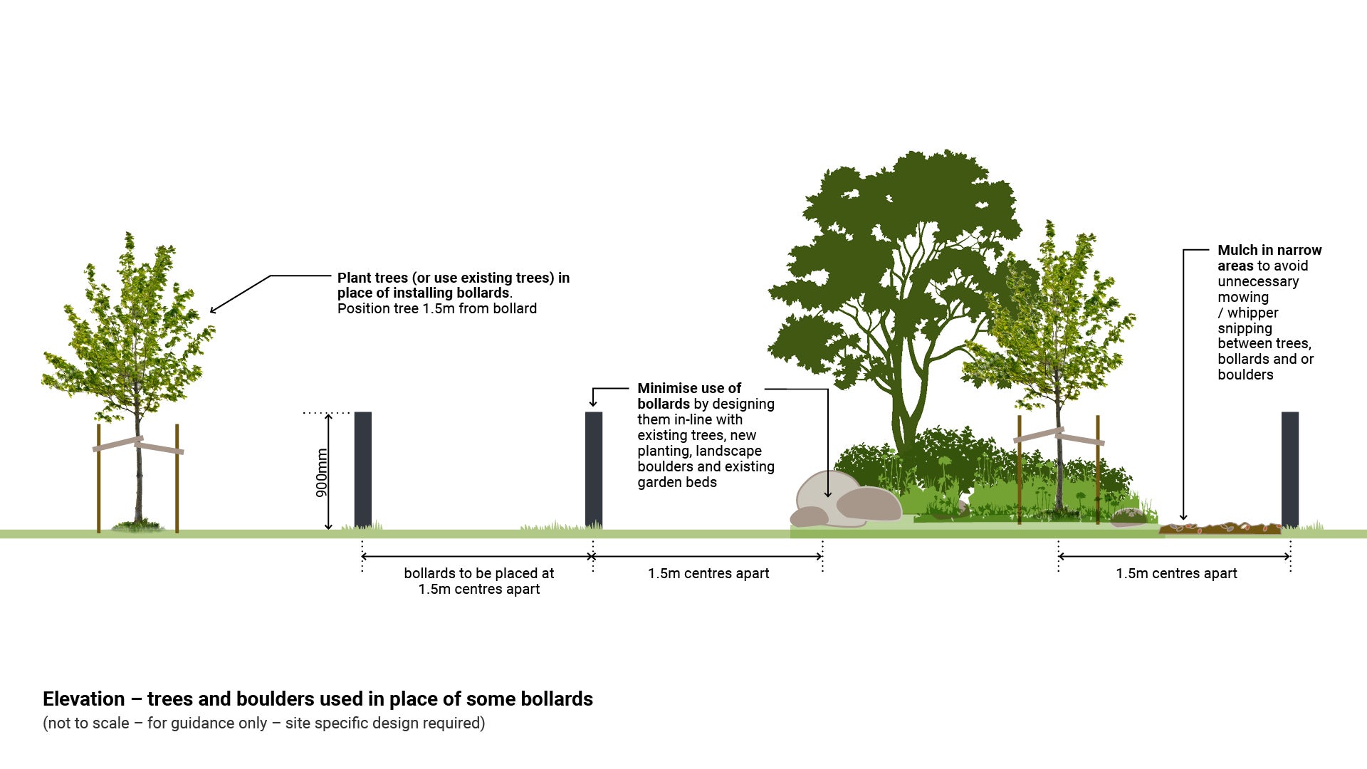 - Figure 2: Elevation – trees and boulders used in place of some bollards