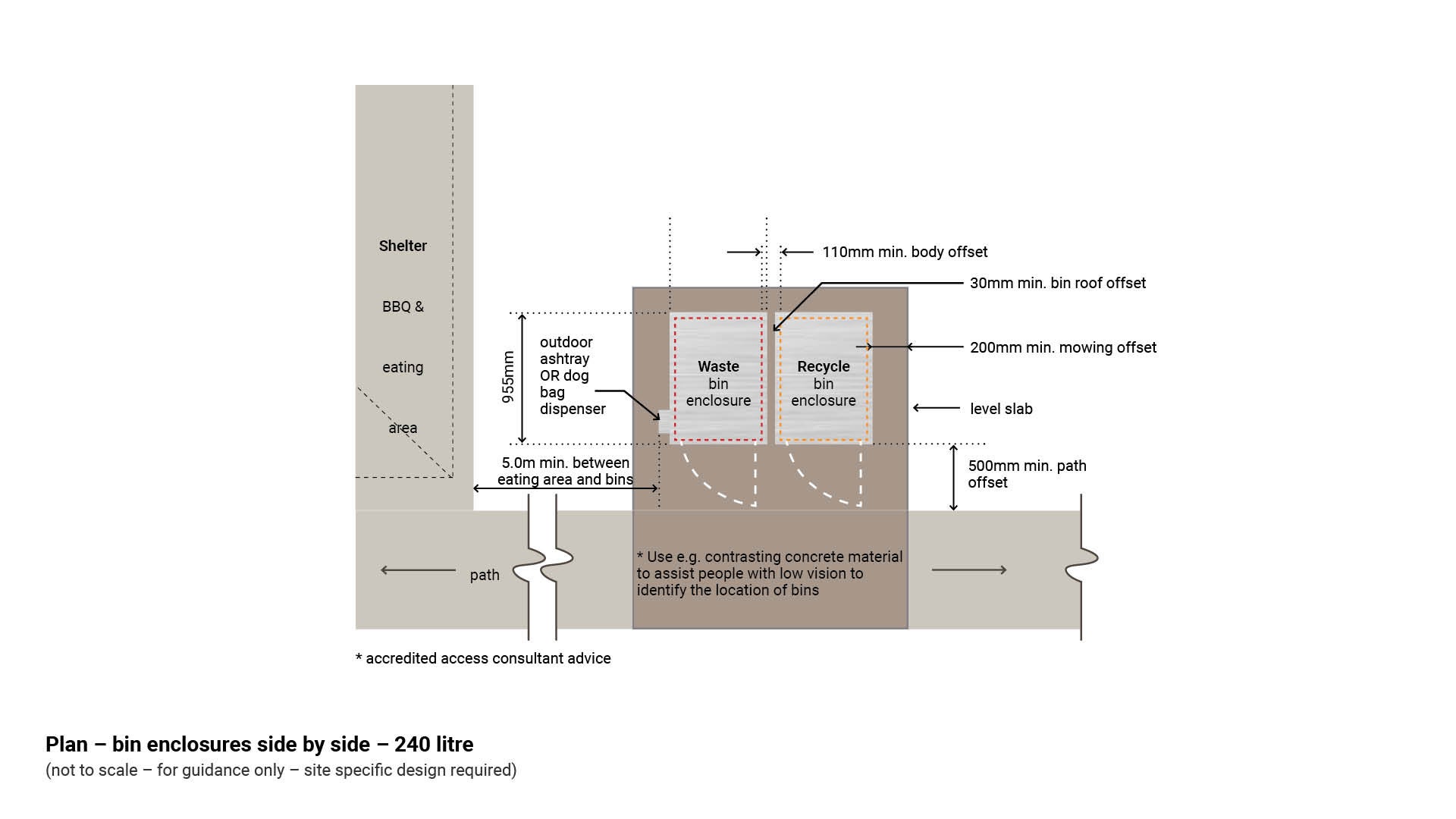 See Figure 6: Plan – bin enclosures side by side – 240 litre.
