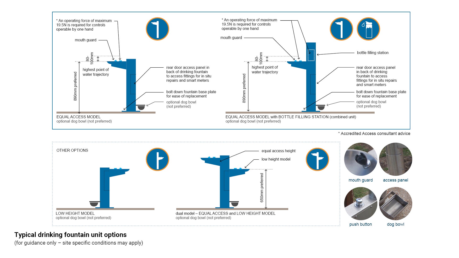 - Figure 1: Typical drinking fountain unit options for further guidance.