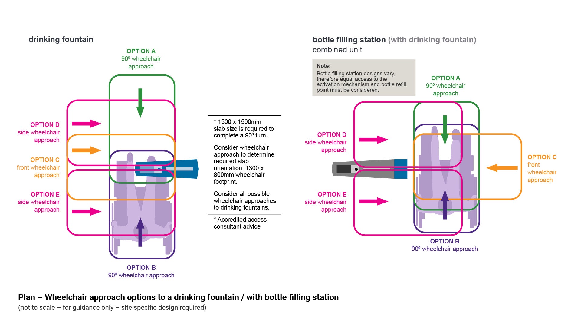 Figure 3: Plan – Wheelchair approach options to a drinking fountain/with bottle filling station