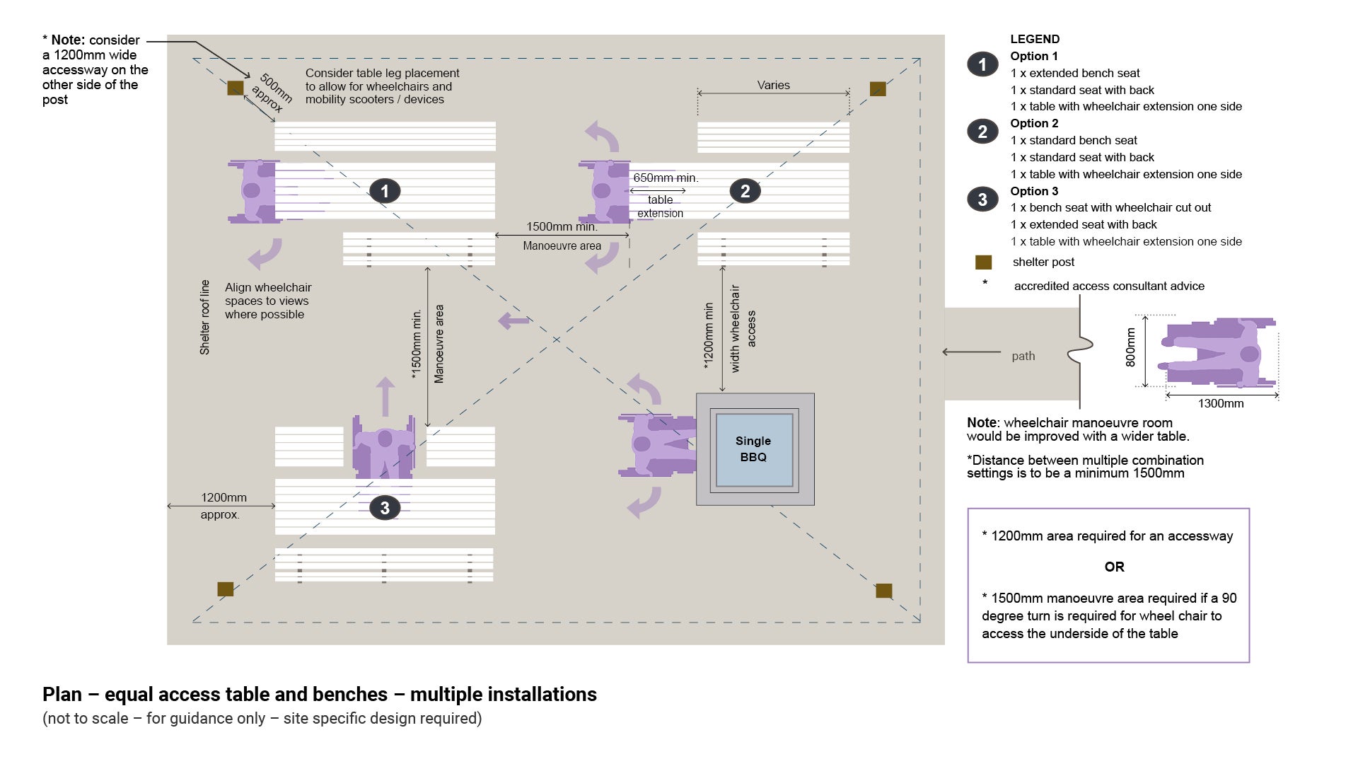 - Figure 2: Plan - equal access table and benches - multiple installations