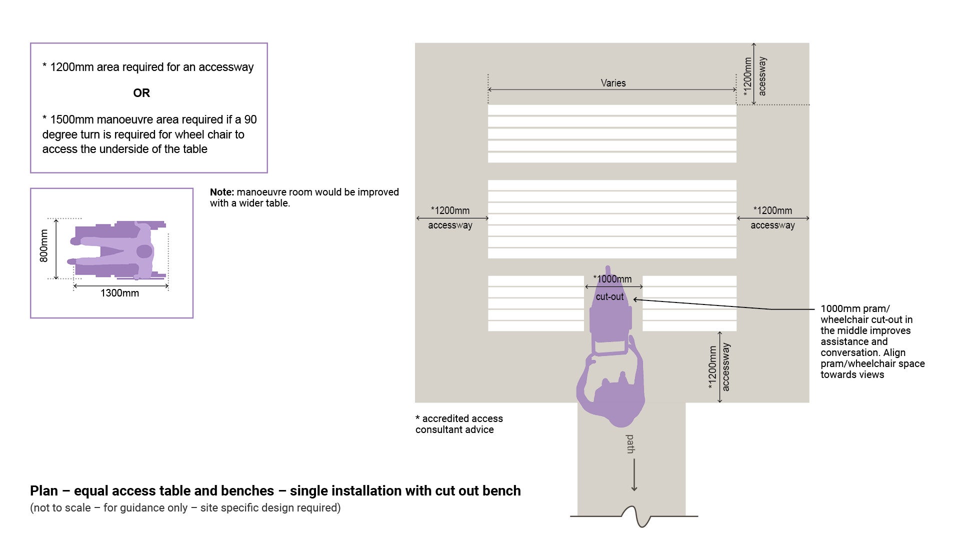 - Figure 1: Plan - equal access table and benches - single installation with cut out bench