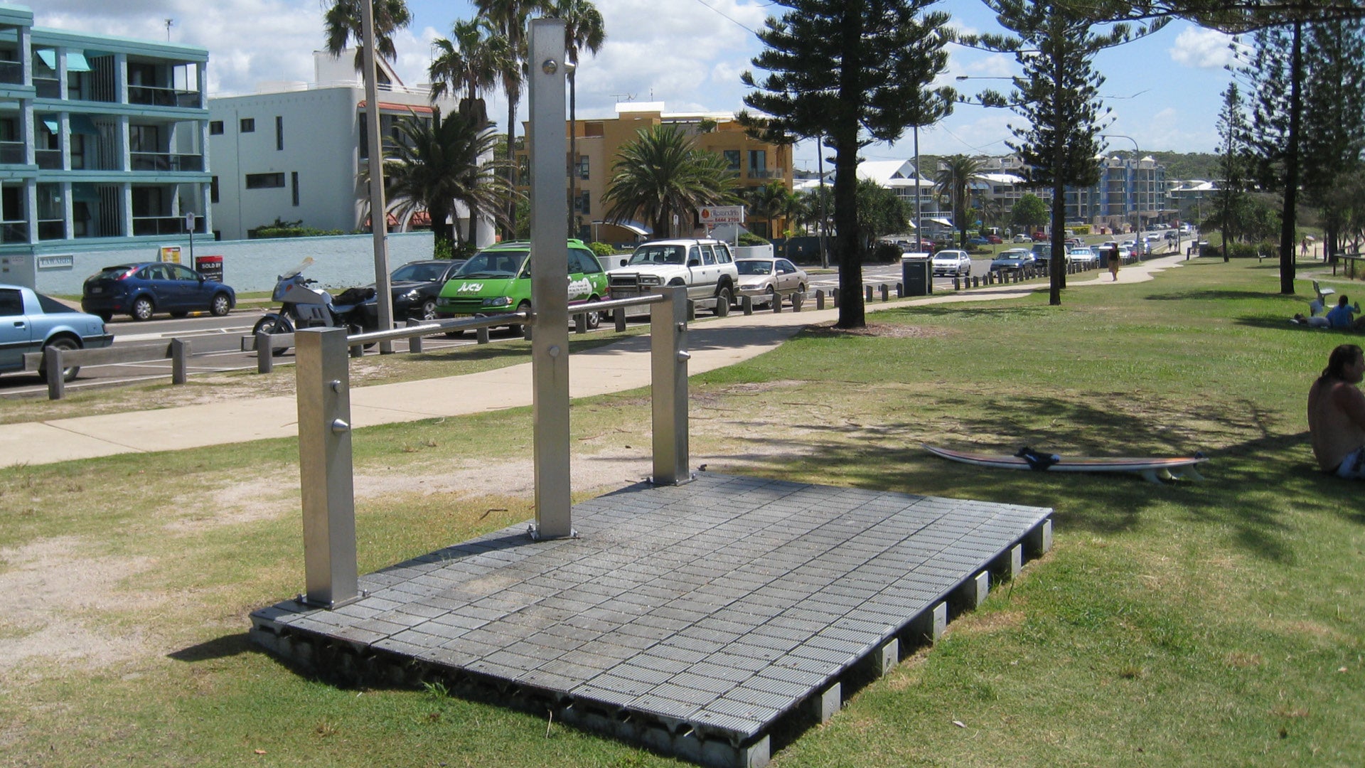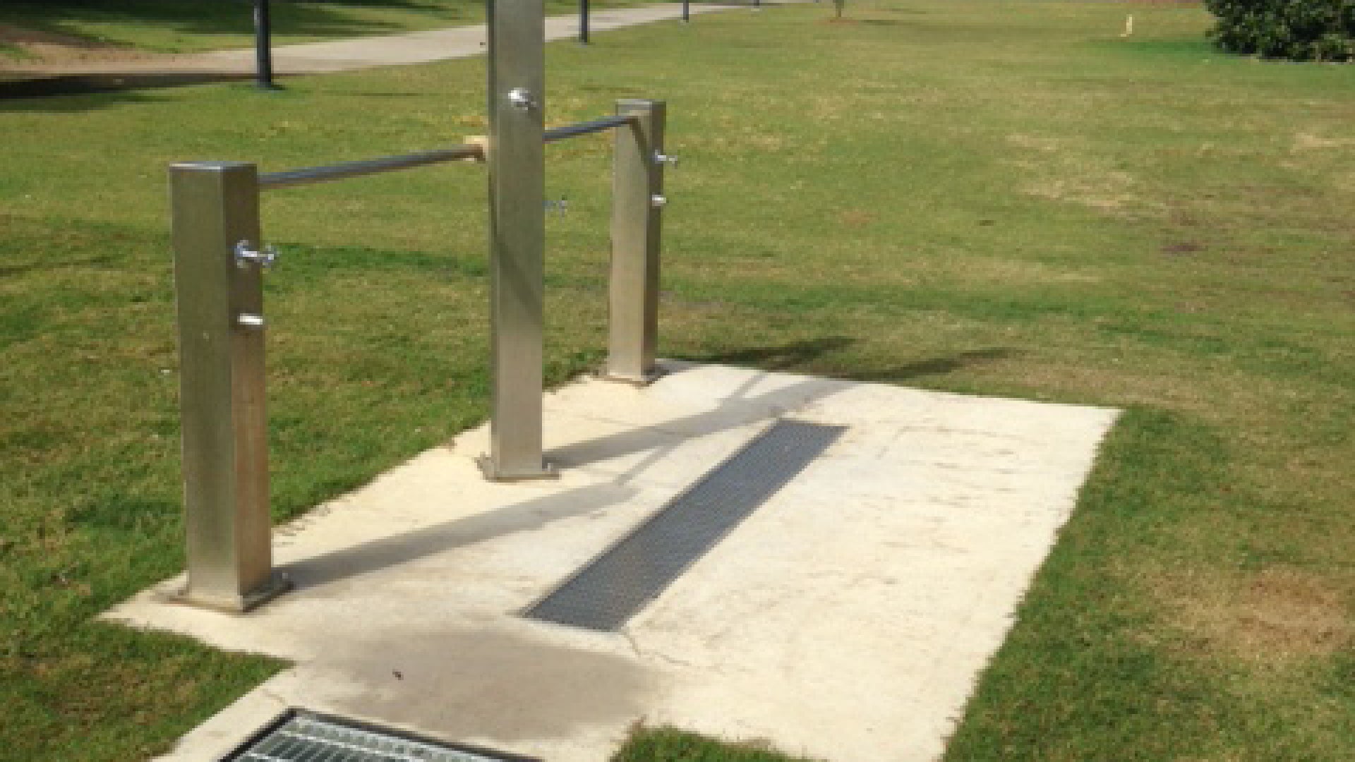 Public space outdoor showers enable everyone to rinse off after activities and swimming at foreshores and water courses.