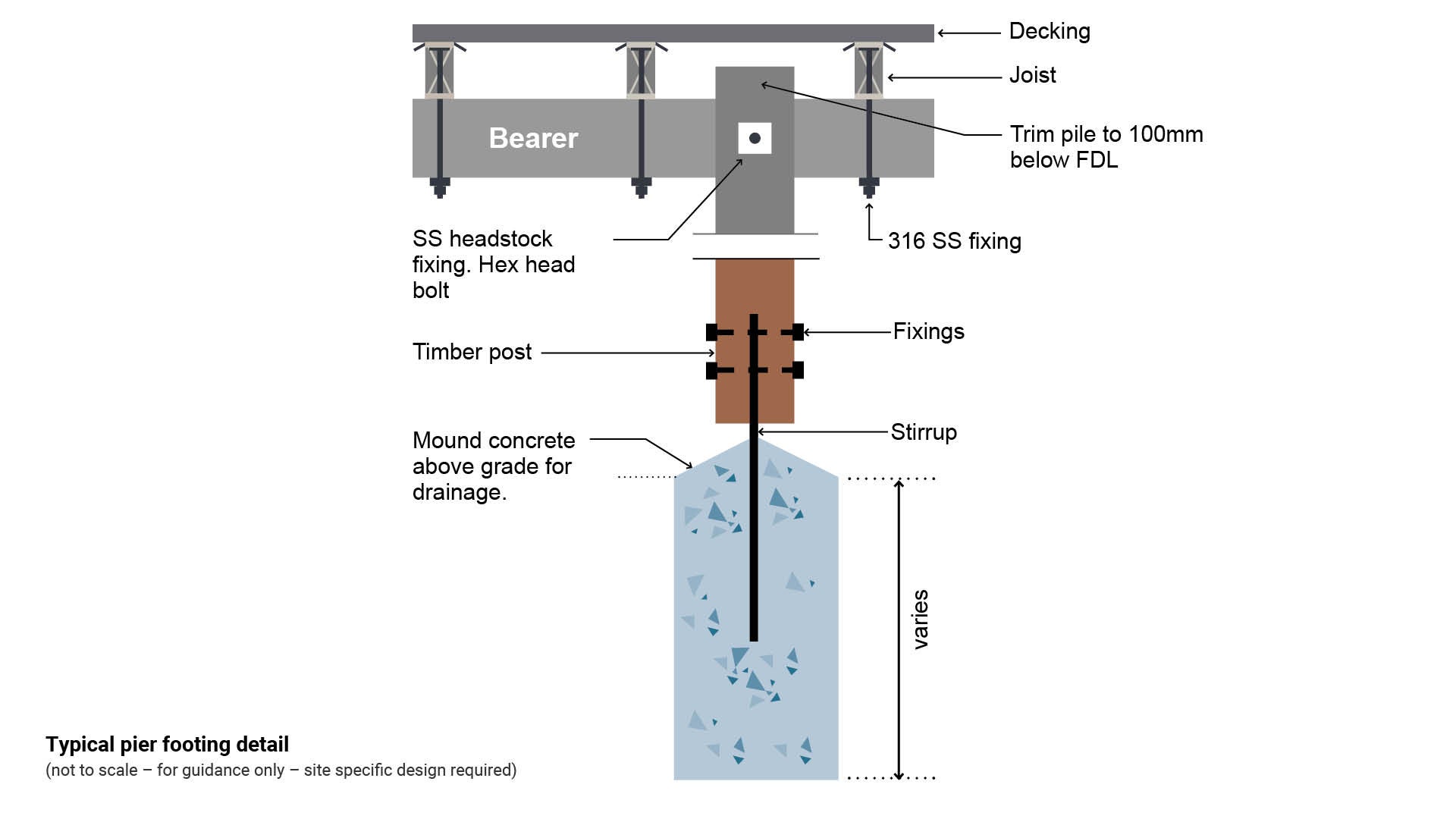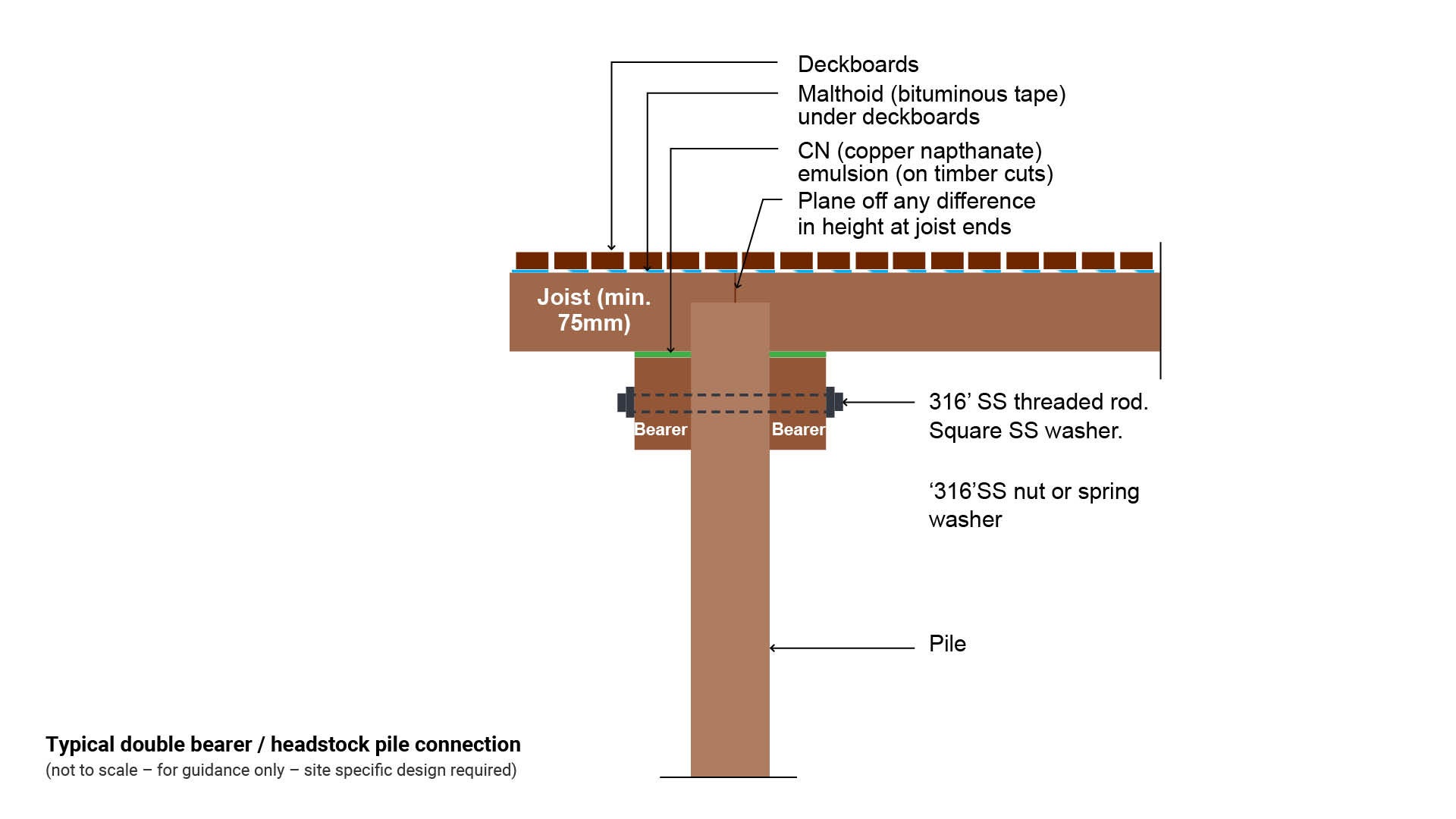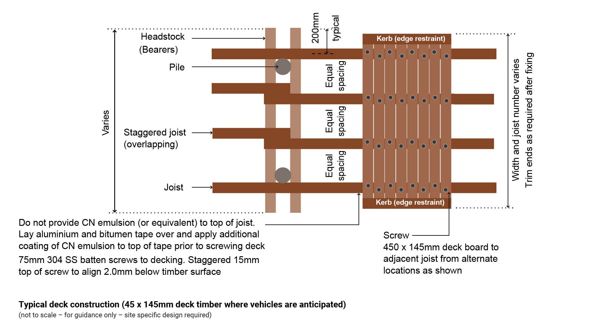 - Figure 6: Typical deck construction (45 x 145 mm deck timber where vehicles are anticipated)