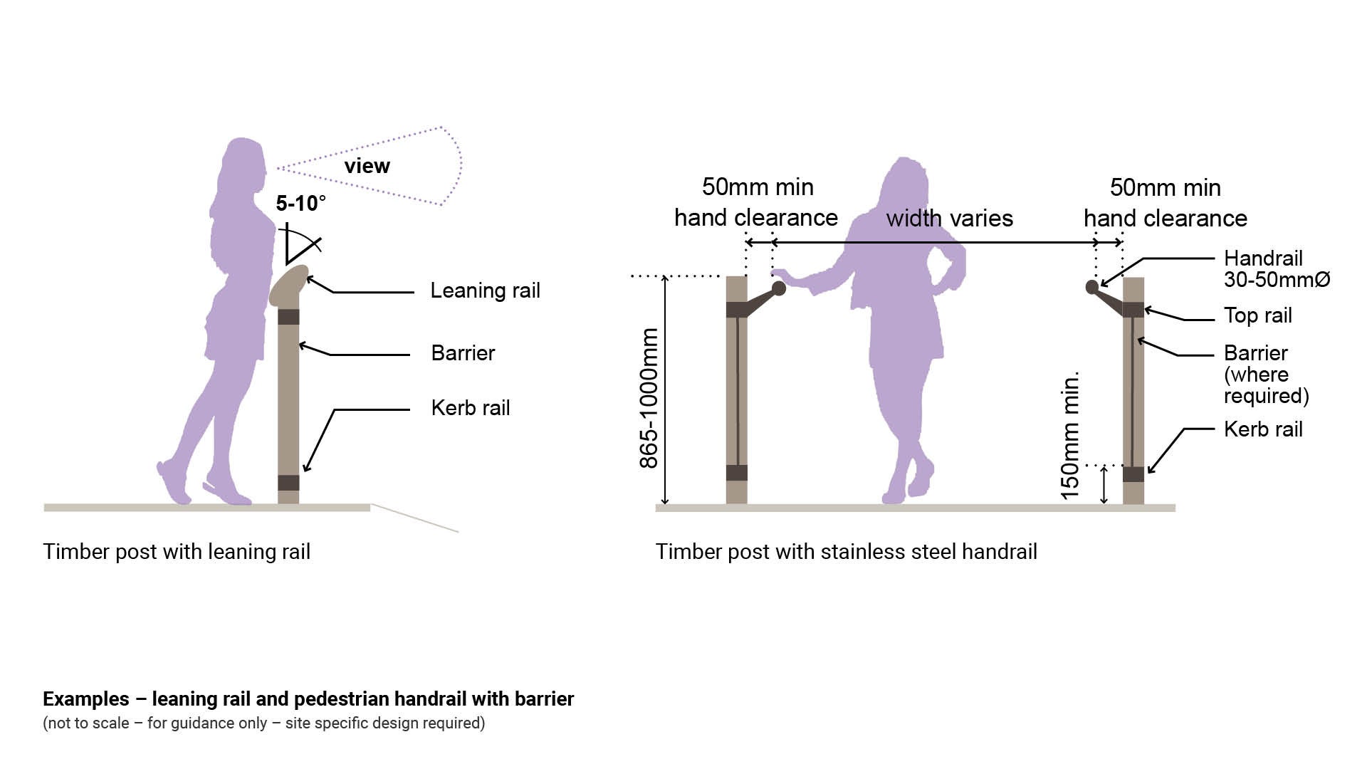 - See Figure 1: Examples - leaning rail and pedestrian handrail with barrier.