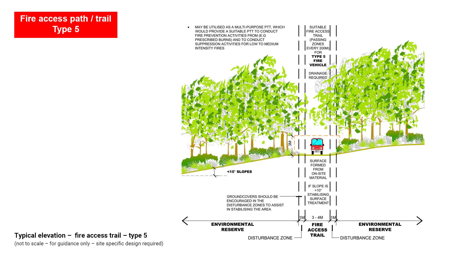 See Figure 33: Typical elevation – fire access trail – type 5.