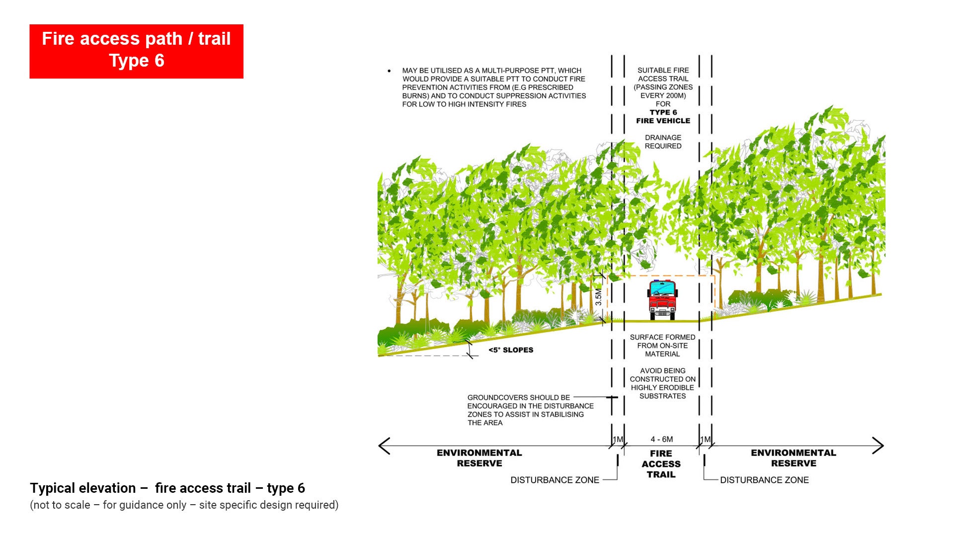 See Figure 34: Typical elevation – fire access trail – type 6.