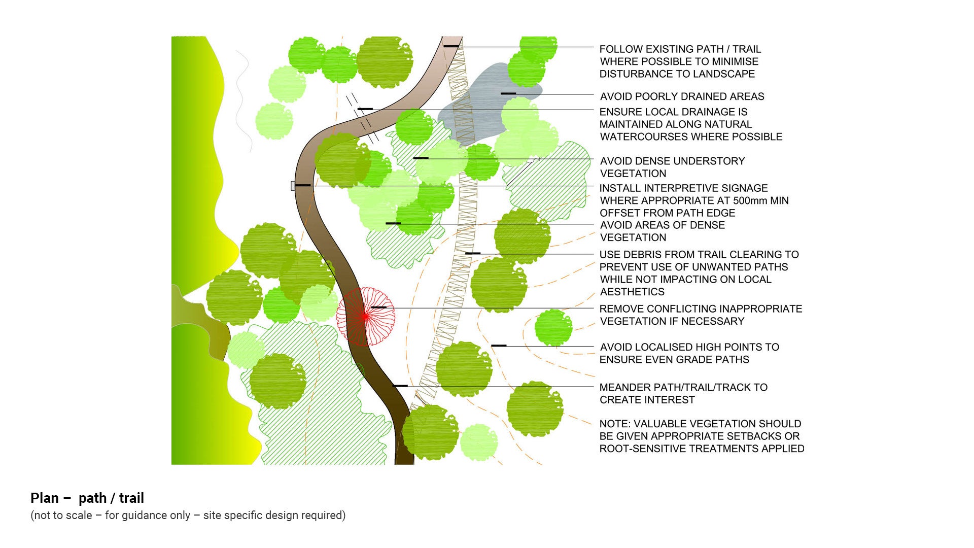 Path/trail/track (PTT) design is critical to providing a good experience for the user and in managing the construction process. Investment of resources in thorough planning and siting of the PTT will minimise initial construction costs and ongoing maintenance costs and impacts.