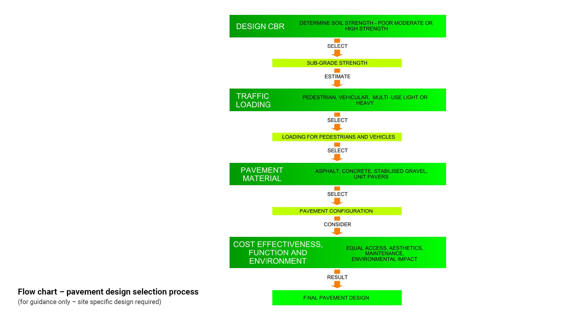 - For basic pavement design process see Figure 7: Flow chart - pavement design selection process for further guidance.