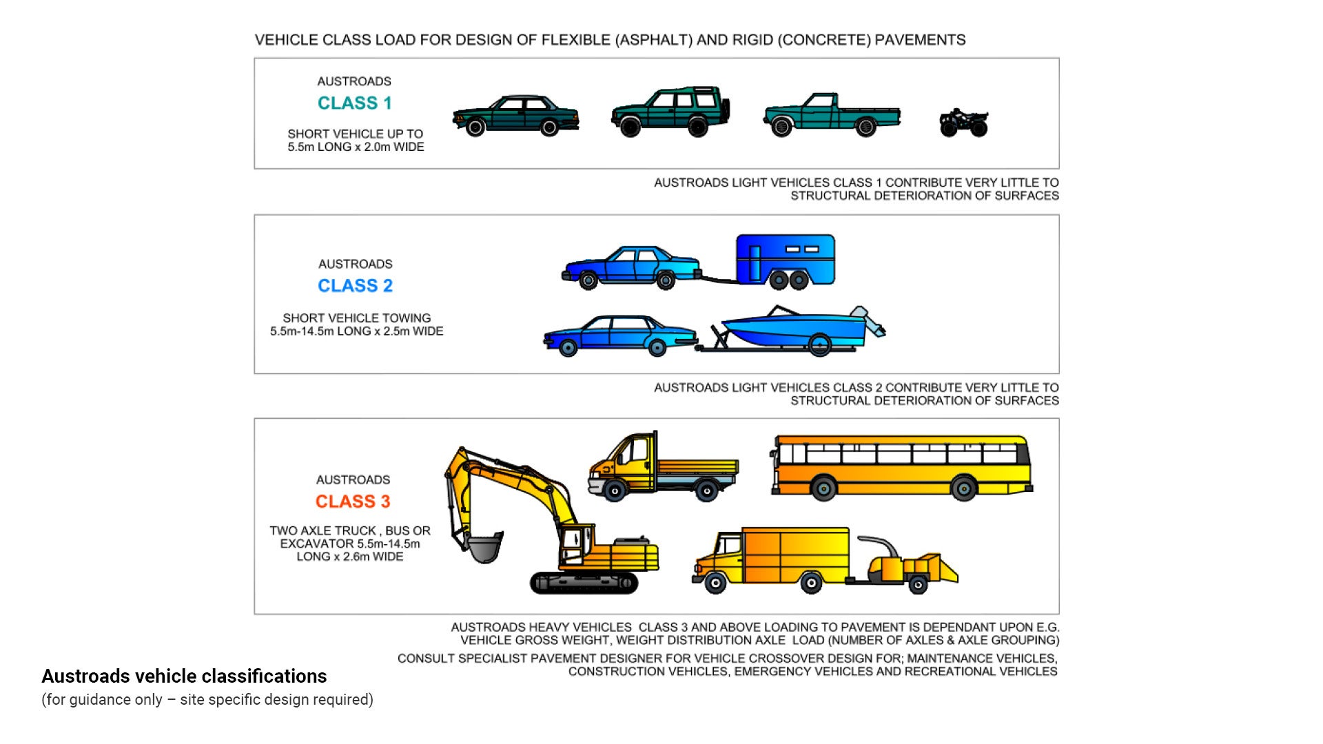 - For vehicle access requirements see 6.8 Vehicle users (Austroads classes).