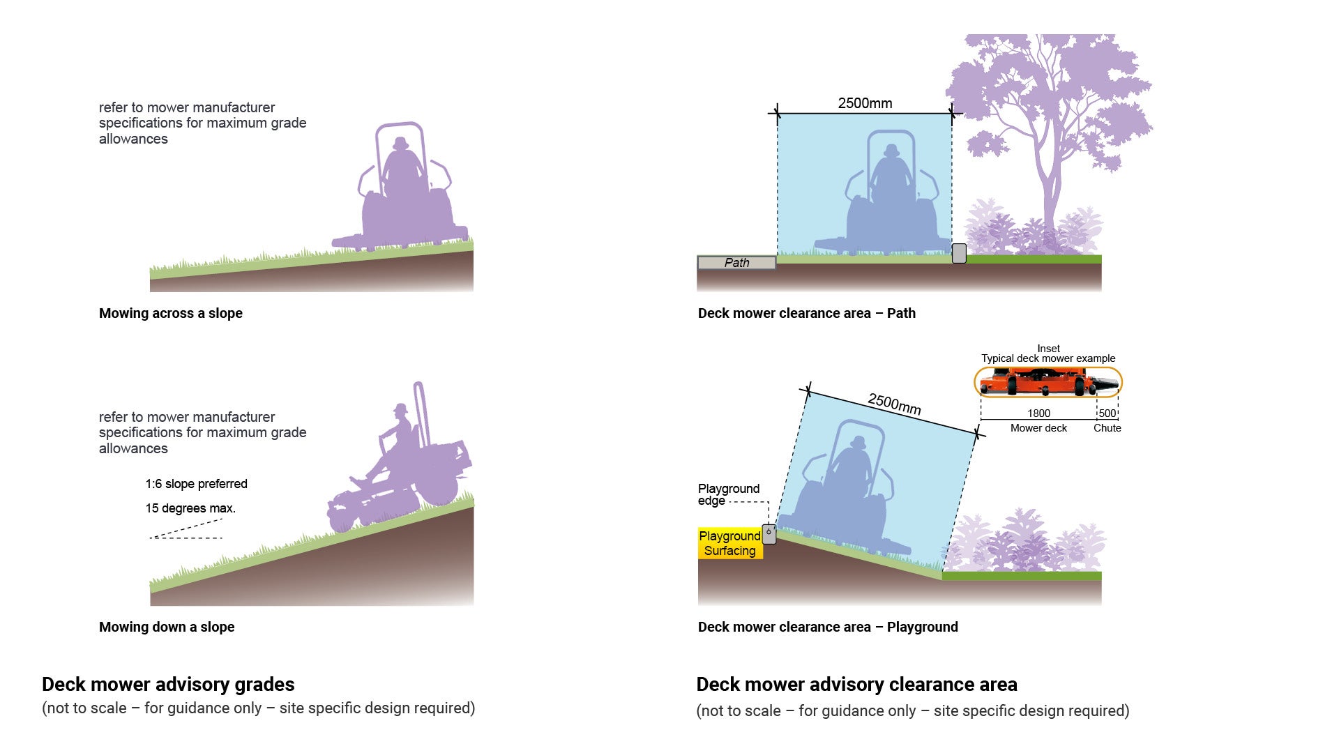 Figure 2: Deck mower advisory grades and clearance areas