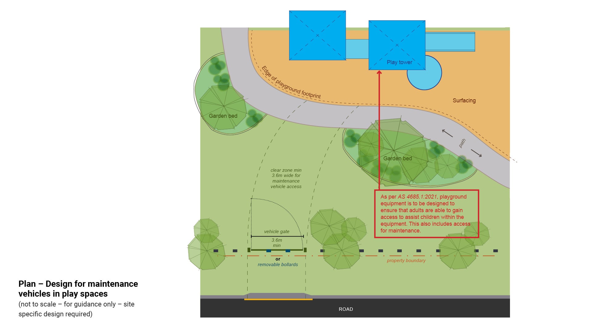 See Figure 3: Design for maintenance vehicles in play spaces.