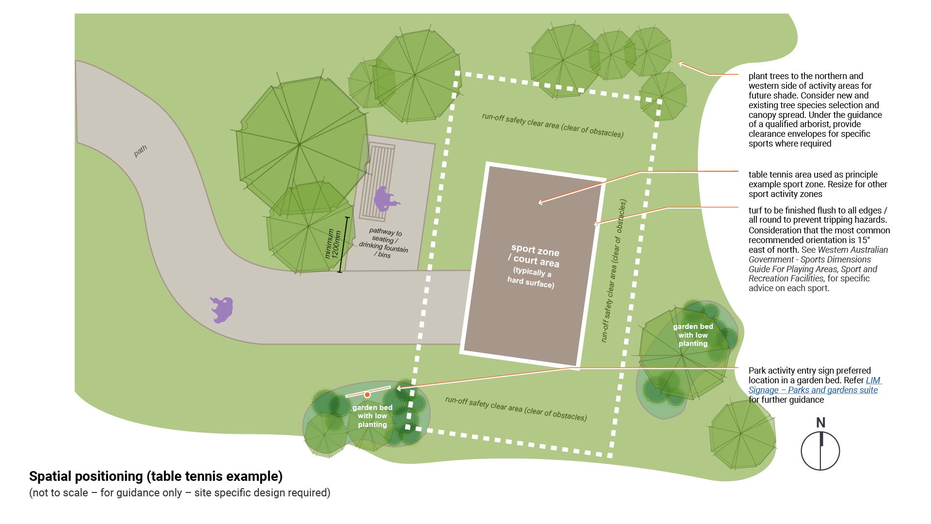 Sports and games | Activity entry sign | Install at entry, garden bed preferred (see LIM Signage) | For regulatory guidance |