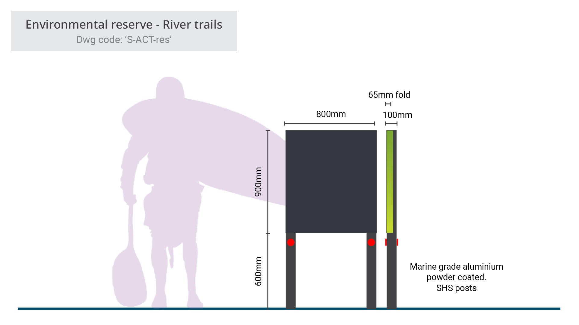 - Environmental reserve - River trail sign: Reflectors must be positioned on each post (both sides) to alert users.