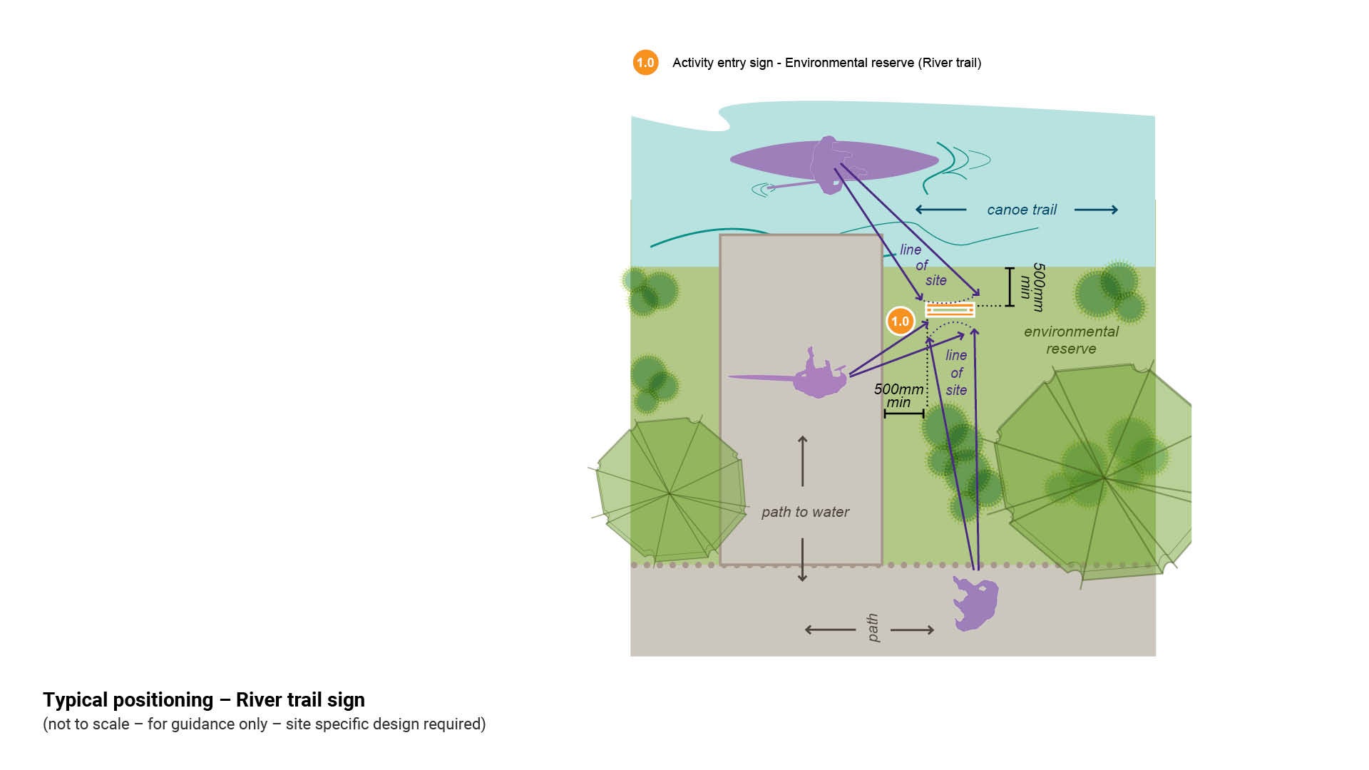 The following should be considered prior to installing an Activity entry sign - Environmental reserve, for river trails: