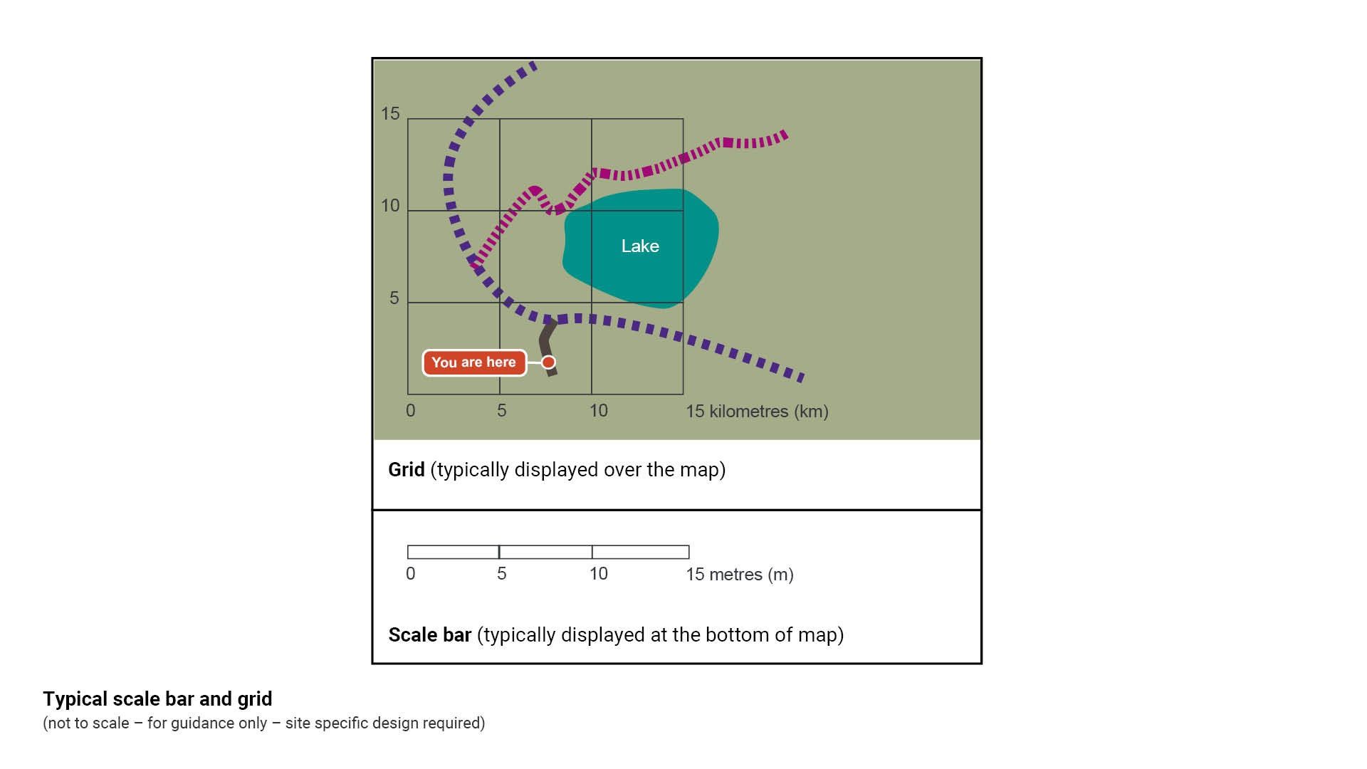 All content is displayed with the intent of minimising risk and enhancing visitor experience. Map and information signs may provide a variety of content: