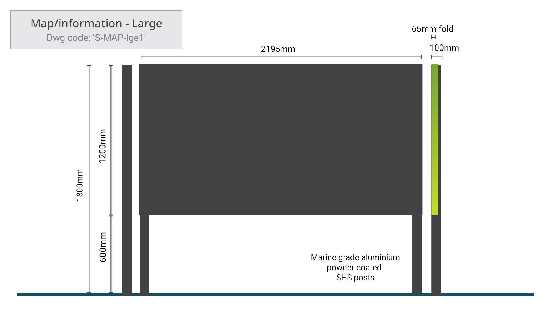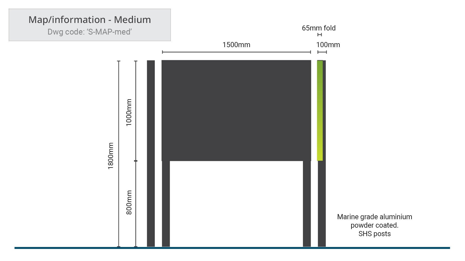 There are three choices of sizes in the Map and information sign range. Selecting a the appropriate size to suite your application and site may be determined by the following: