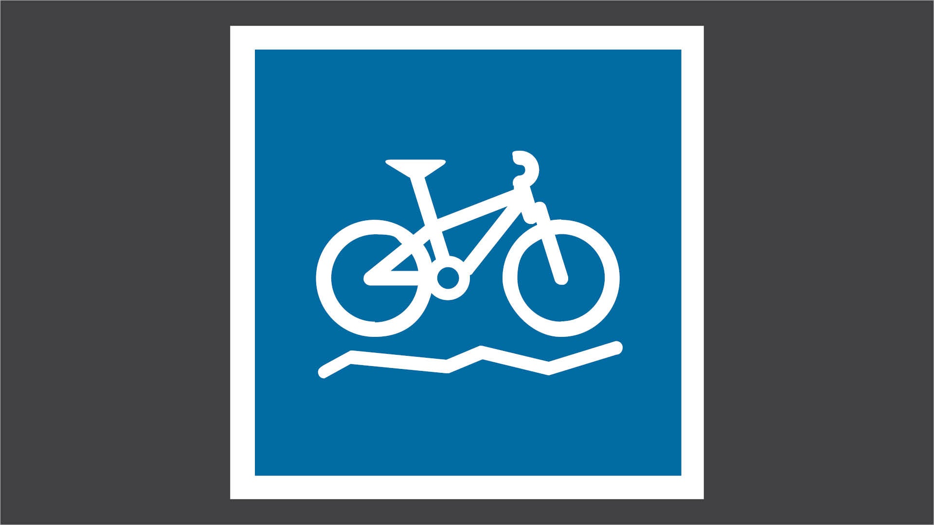 Mountain bike use the content must include the approved International Mountain Bike Association (IMBA) degree of difficulty pictograms, to be used in conjunction with directional arrows or numbers.