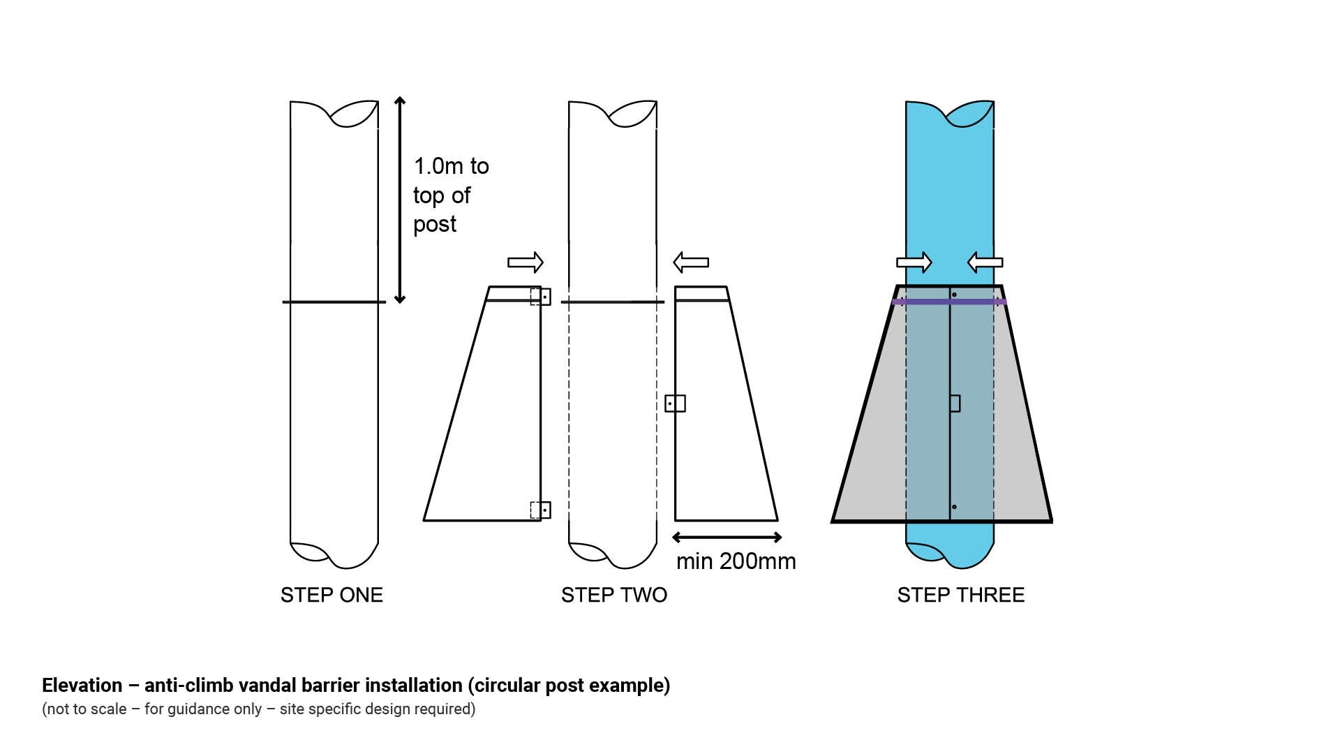 Figure 2: Elevation – anti-climb vandal barrier installation (circular post example)