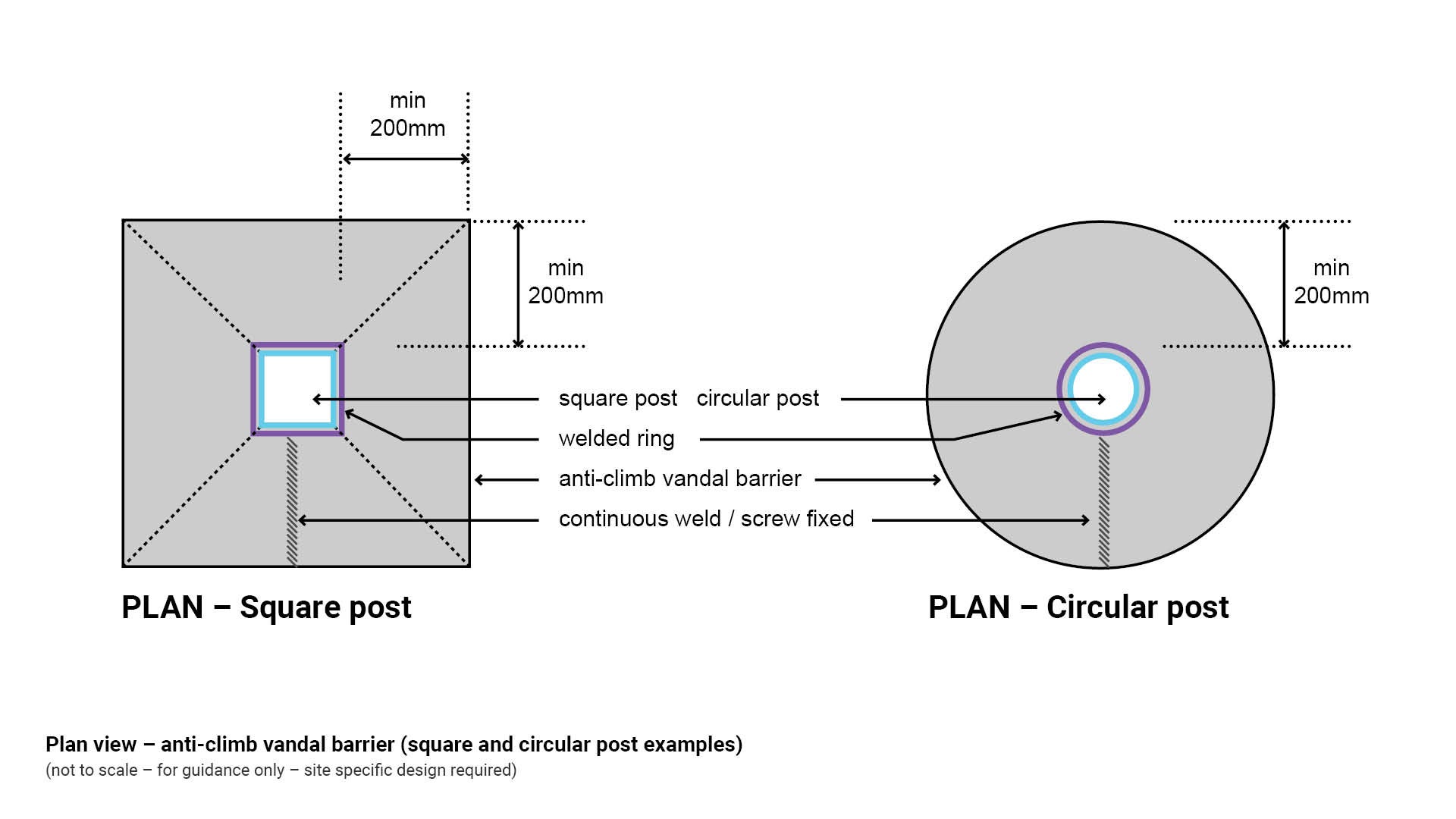 - Figure 3: Plan view – anti-climb vandal barrier (square and circular post examples)