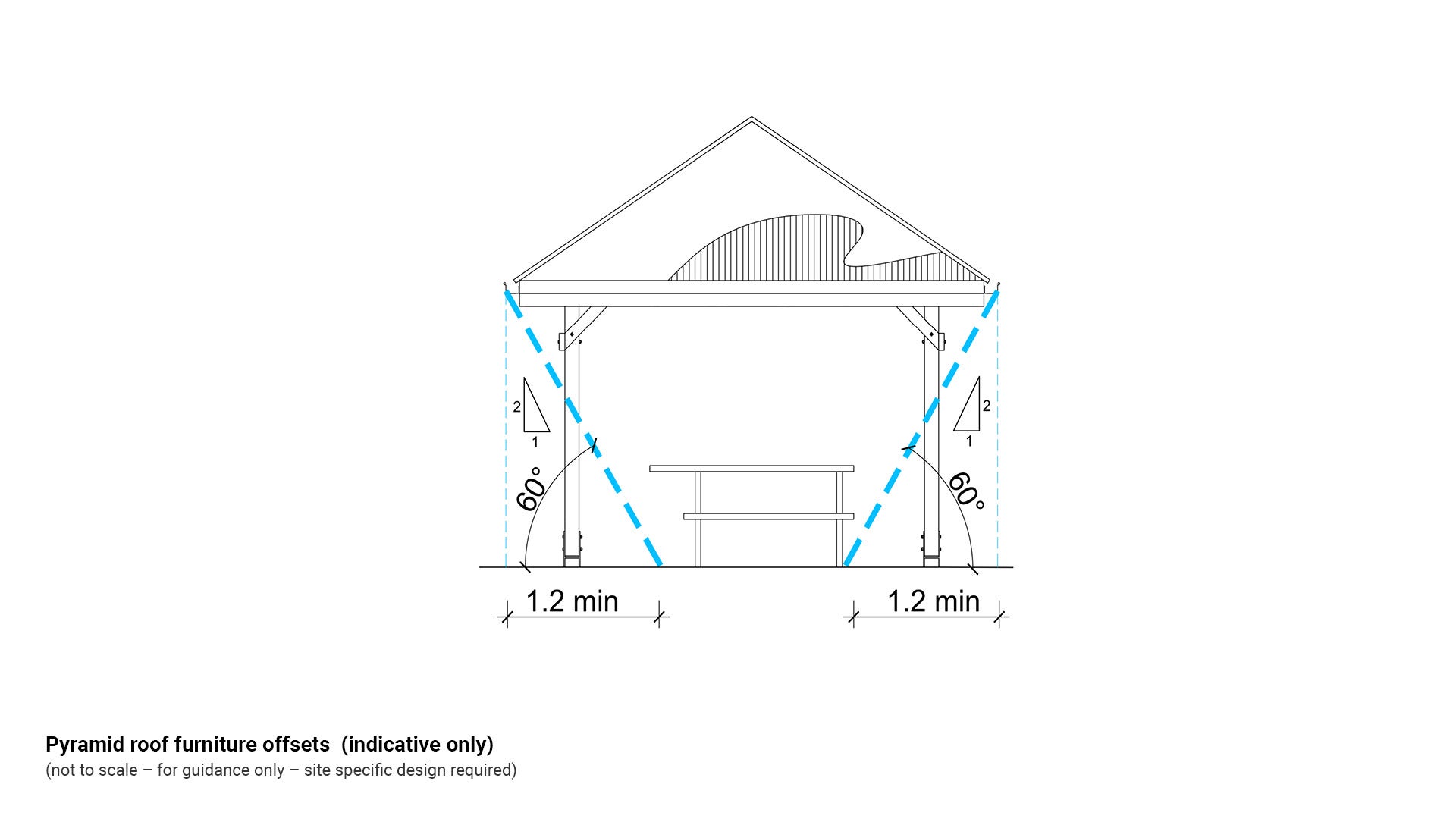 - Furniture is to be offset a preferred minimum 1.2 m inside a shelter roofline (where possible).