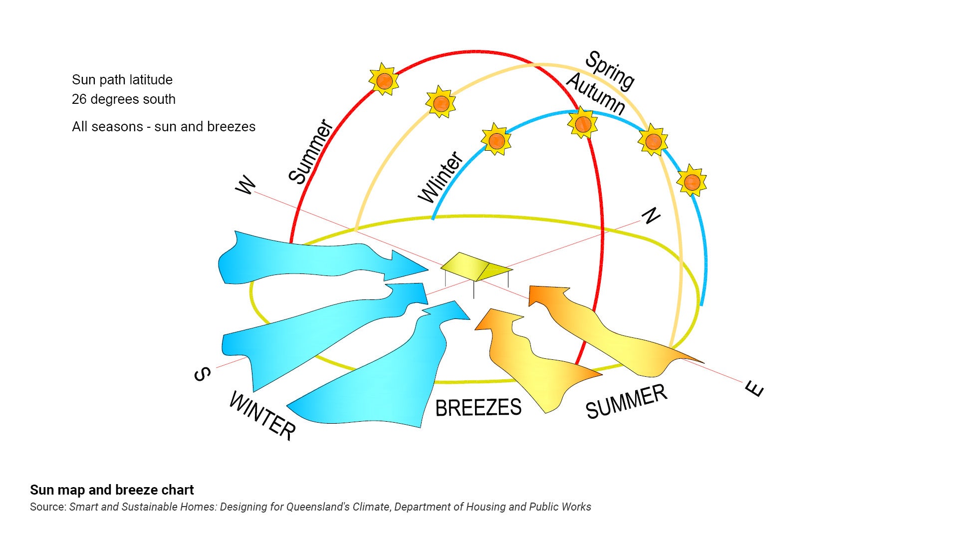 - Sun path latitude is 26° south.