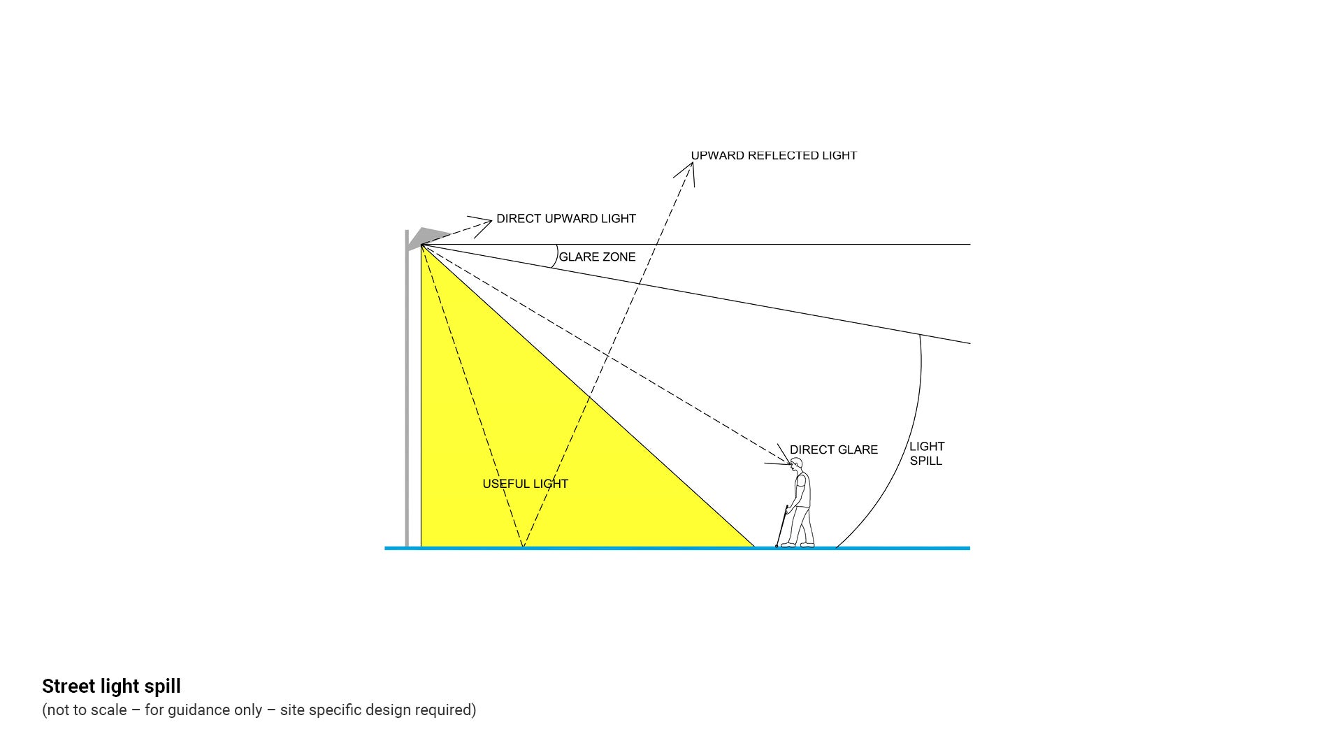 See Figure 4: Street light spill demonstrates the indirect sources of unwanted light and glare.