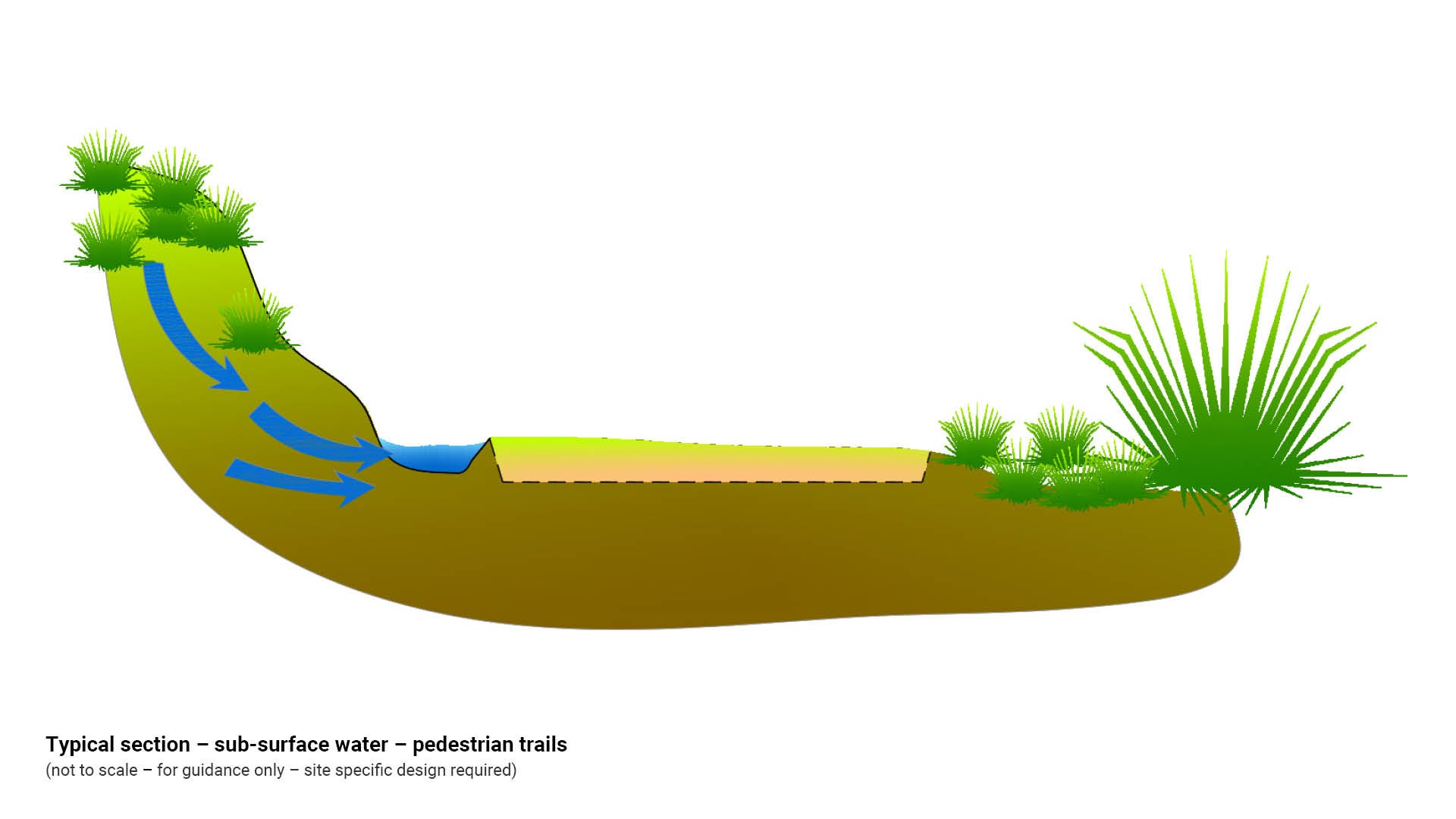 Once the location of the landscape drainage has been decided, based on the Environment and Liveability Strategy (ELS) and Recreation Parks Plan (RPP) guidance, consider the appropriate embellishment level to suit the selected site.