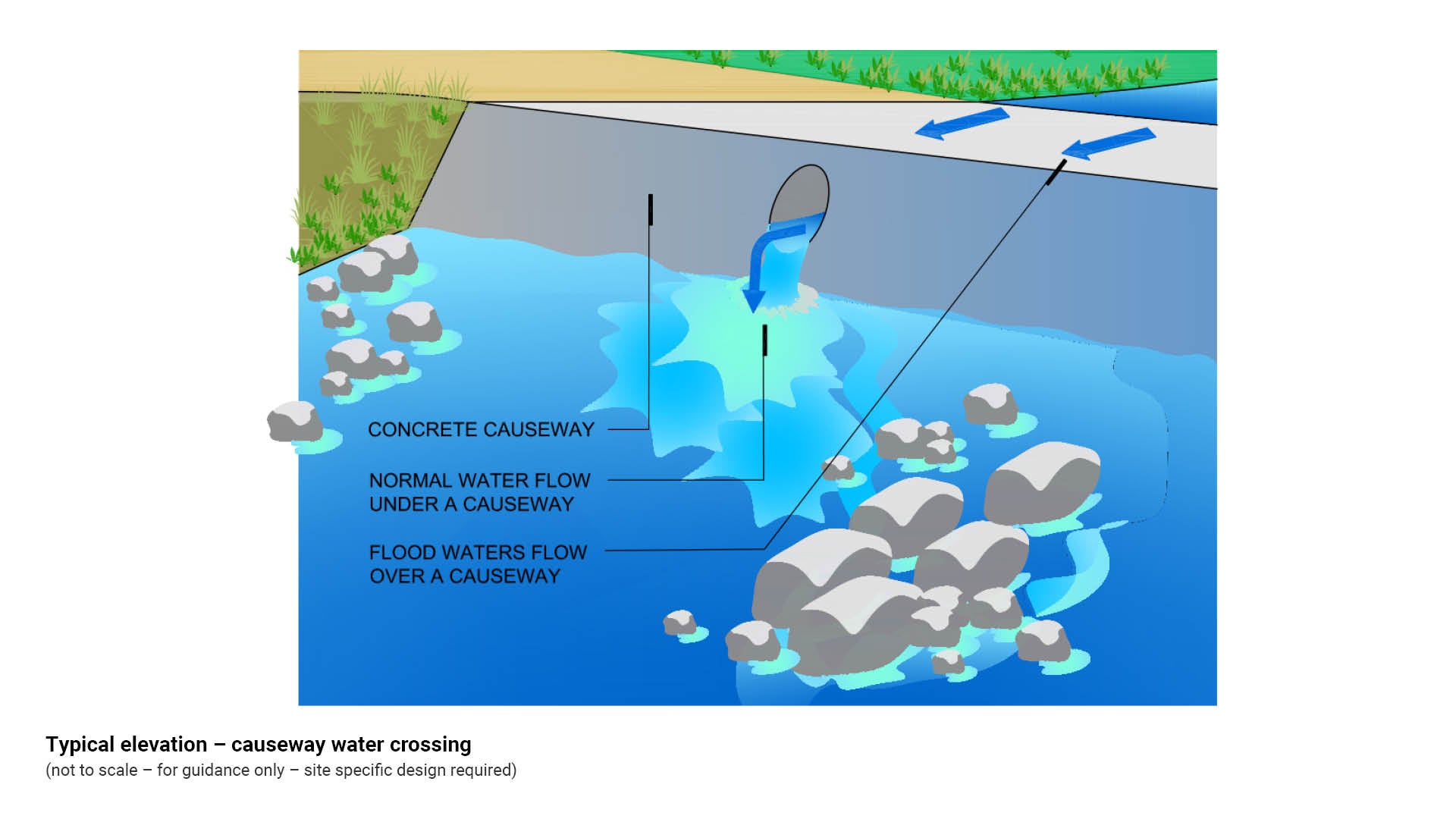 - Consult a suitably qualified engineer to determine the most appropriate rock size, type and installation treatment, to manage site drainage