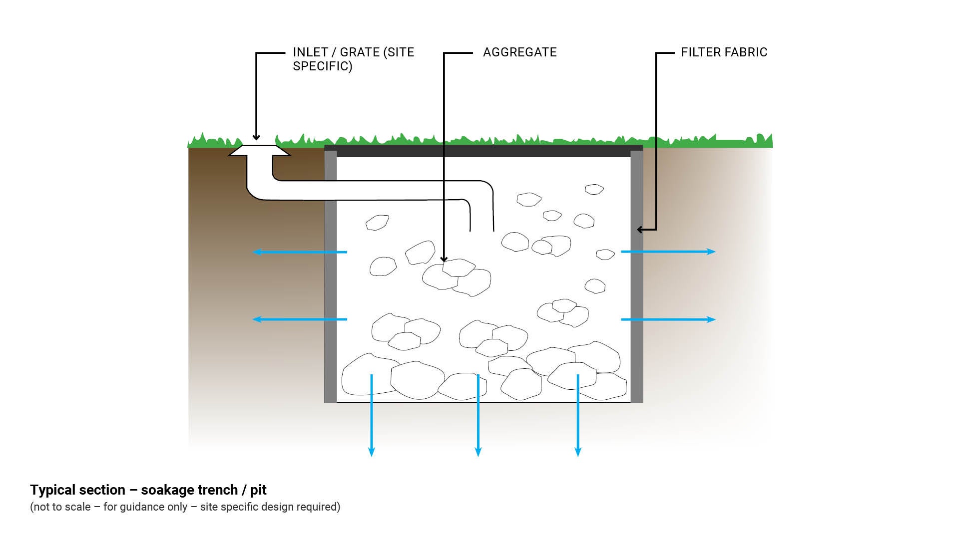 Figure 12: Typical section – soakage trench/pit