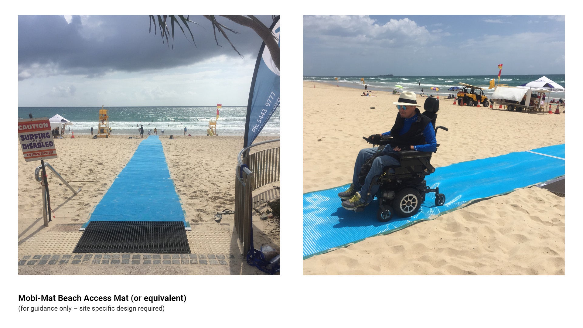 - Provides a firm surface over sand to facilitate access by older people, injured people, people with limited mobility and people who use mobility devices.