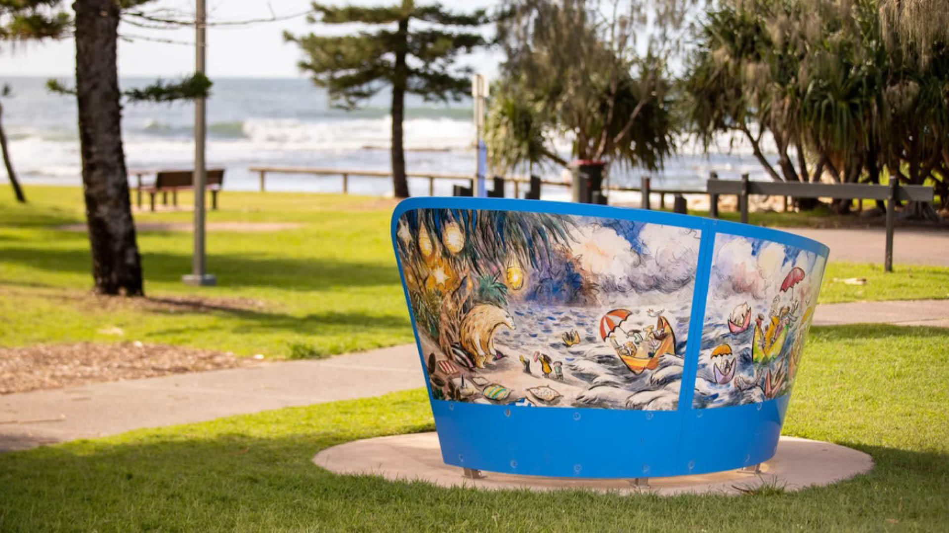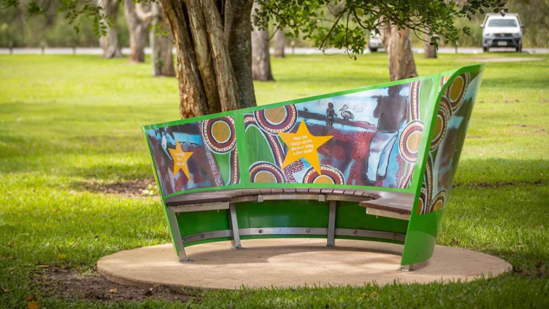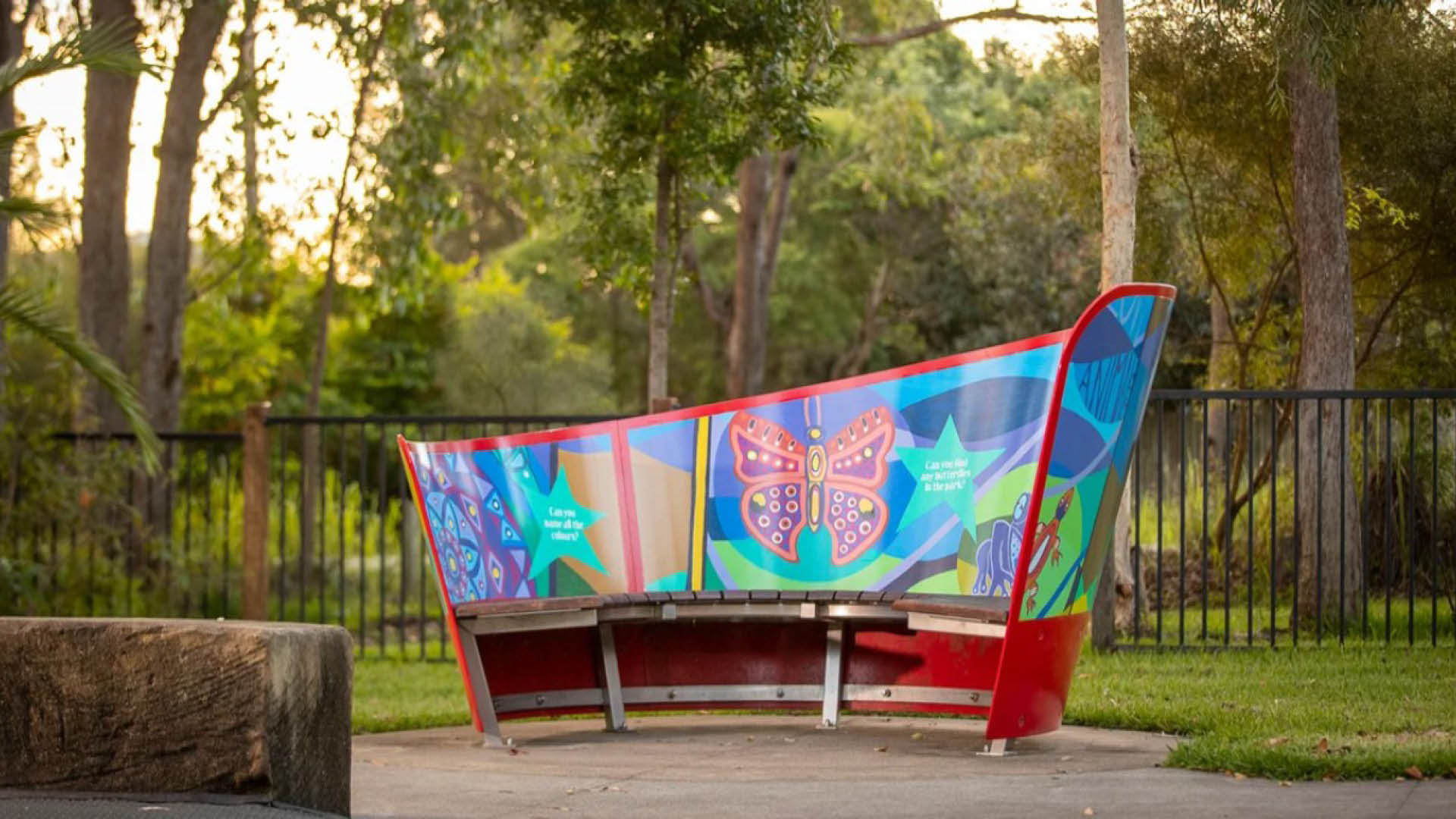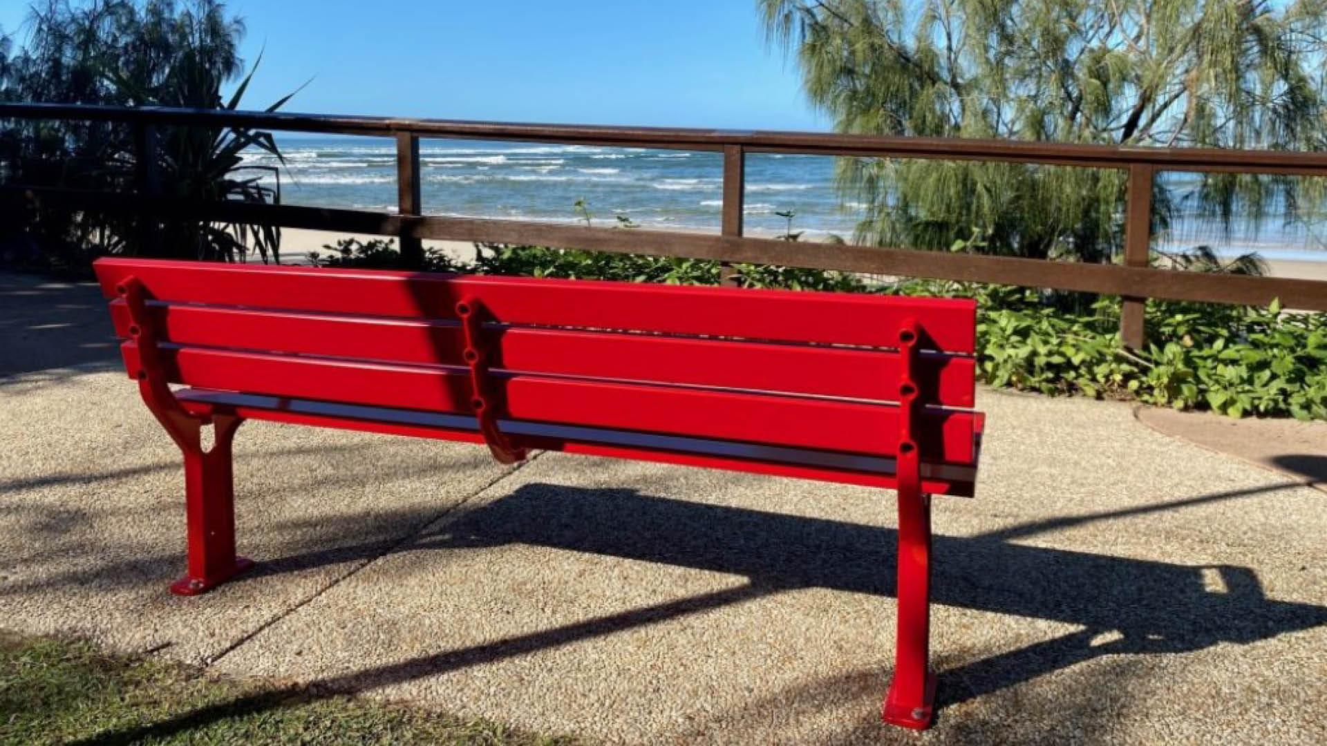 Custom seats - domestic violence (Red Bench Project) ![]() | Frame, battens and arms ![]() | Frame, battens and arms: Powder coated Interpon D2015 Ultriva Commercial Collection Vitality (or equivalent).