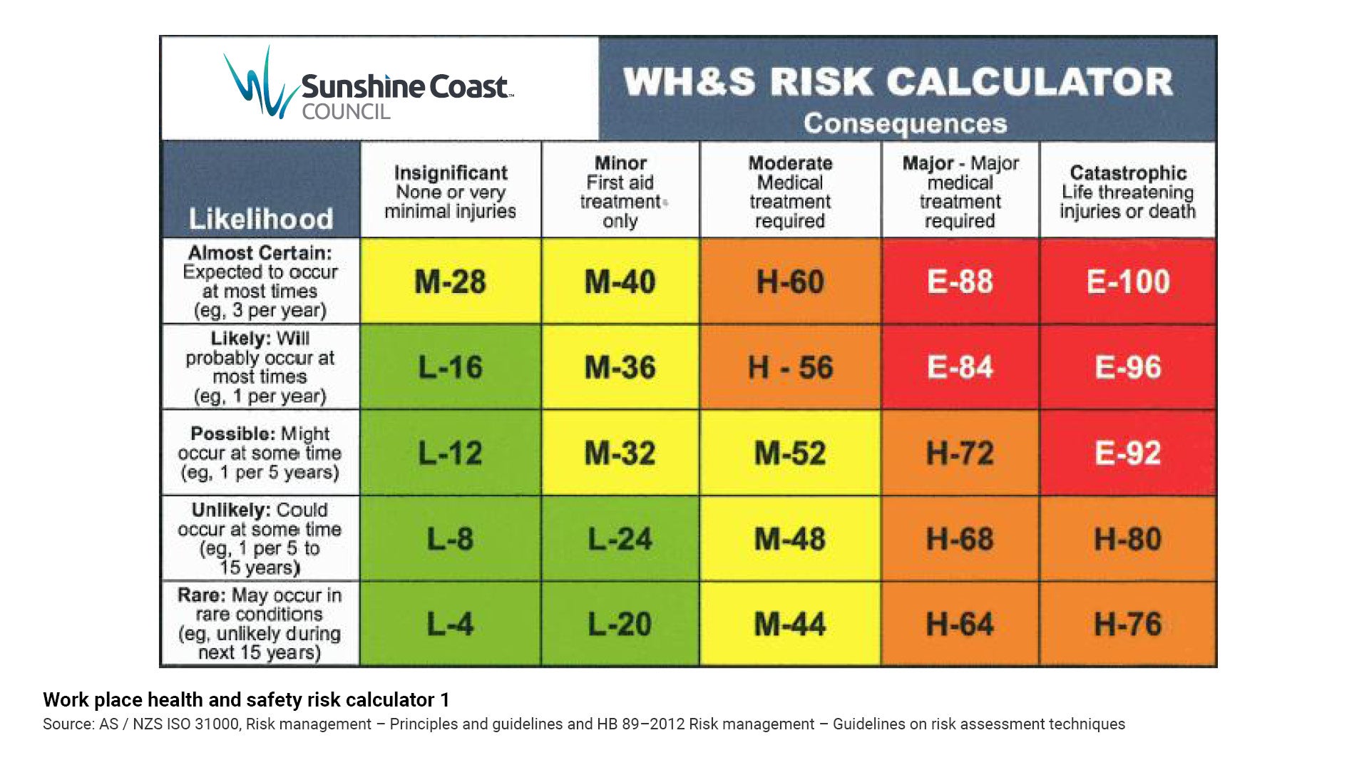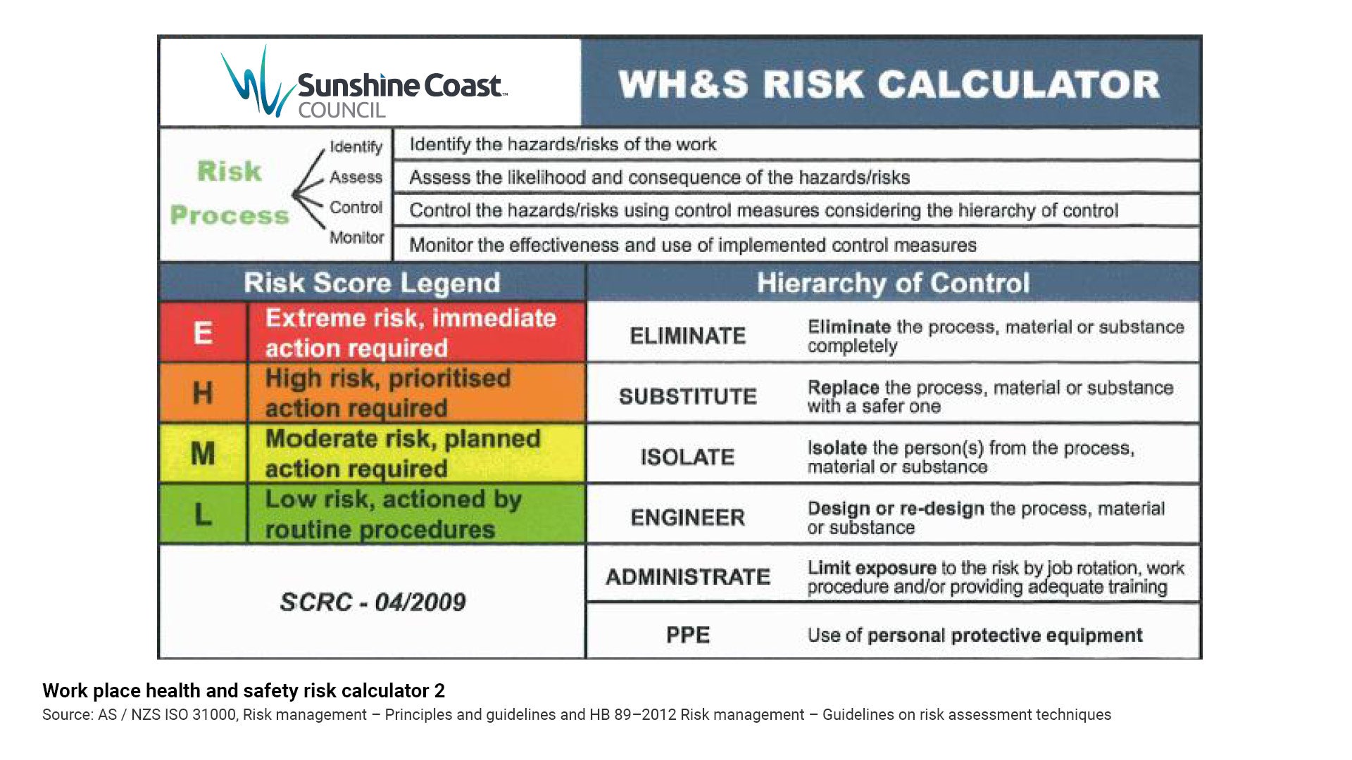 Figure 1: Work place health and safety risk calculator for further guidance.