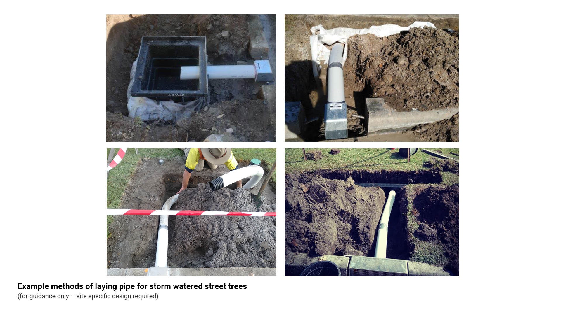 Figure 21: Example methods of laying pipe for storm watered street trees